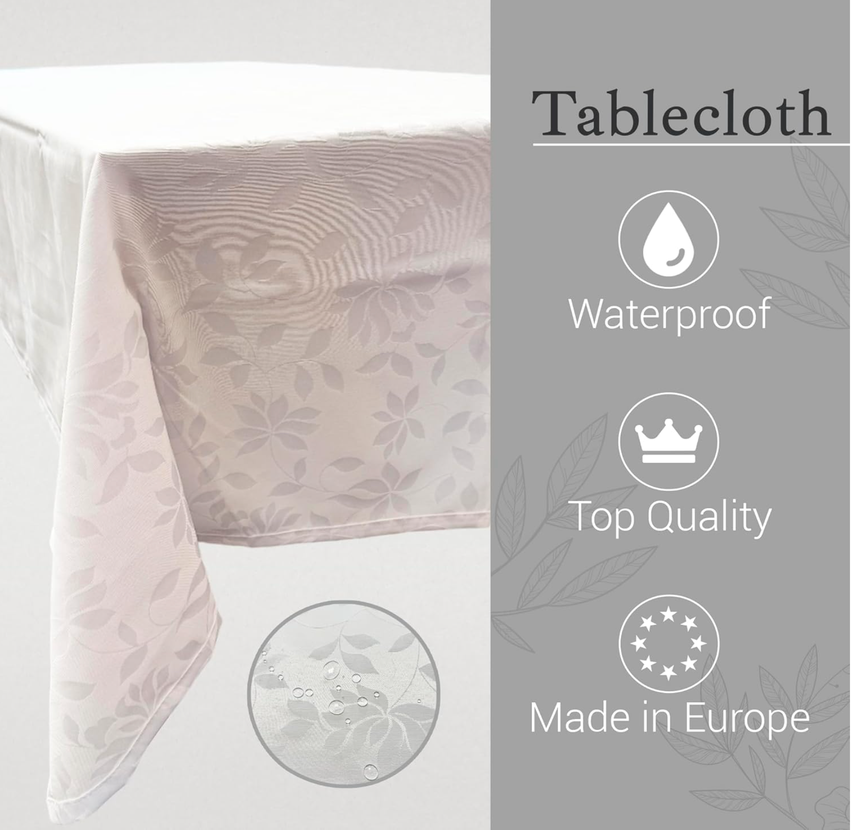 Mantel rectangular blanco, 70% algodón + 30% poliéster, 250cm x 150cm, 150GSM, con tratamiento repelente de aguaMantel rectangular blanco, 70% algodón + 30% poliéster, 250cm x 150cm, 150GSM, con tratamiento repelente de agua