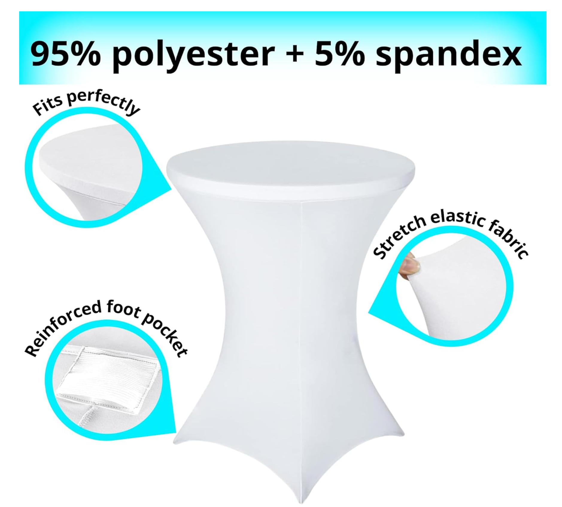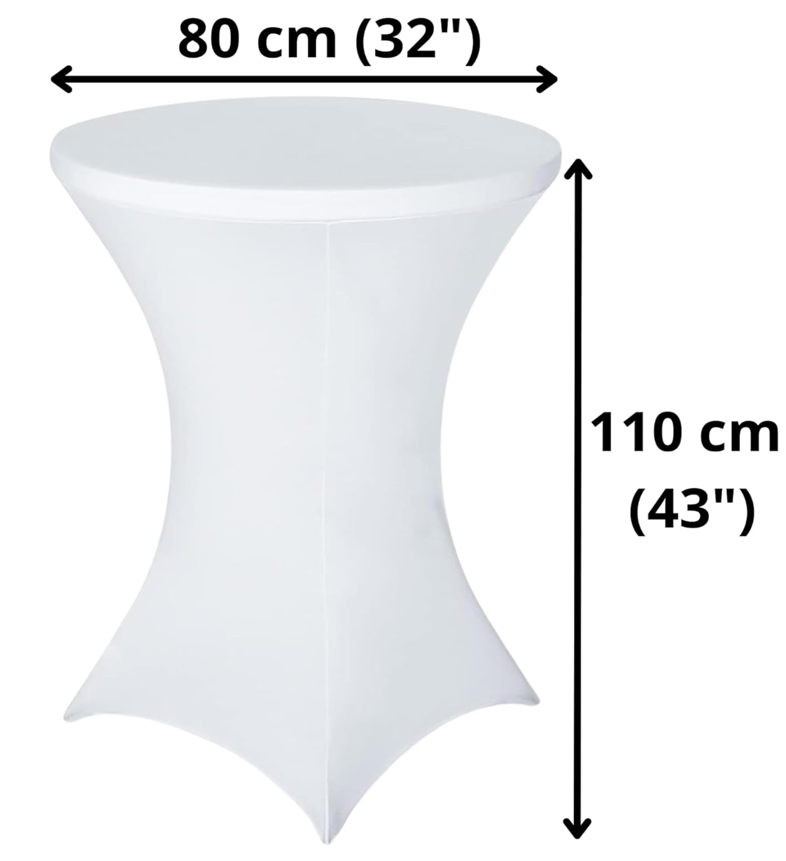 Mantel cocktail blanco lycra, 95% poliéster + 5% lycra, 110cm x 80cm, 190GSM (Pack 2)Mantel cocktail blanco lycra, 95% poliéster + 5% lycra, 110cm x 80cm, 190GSM (Pack 2)